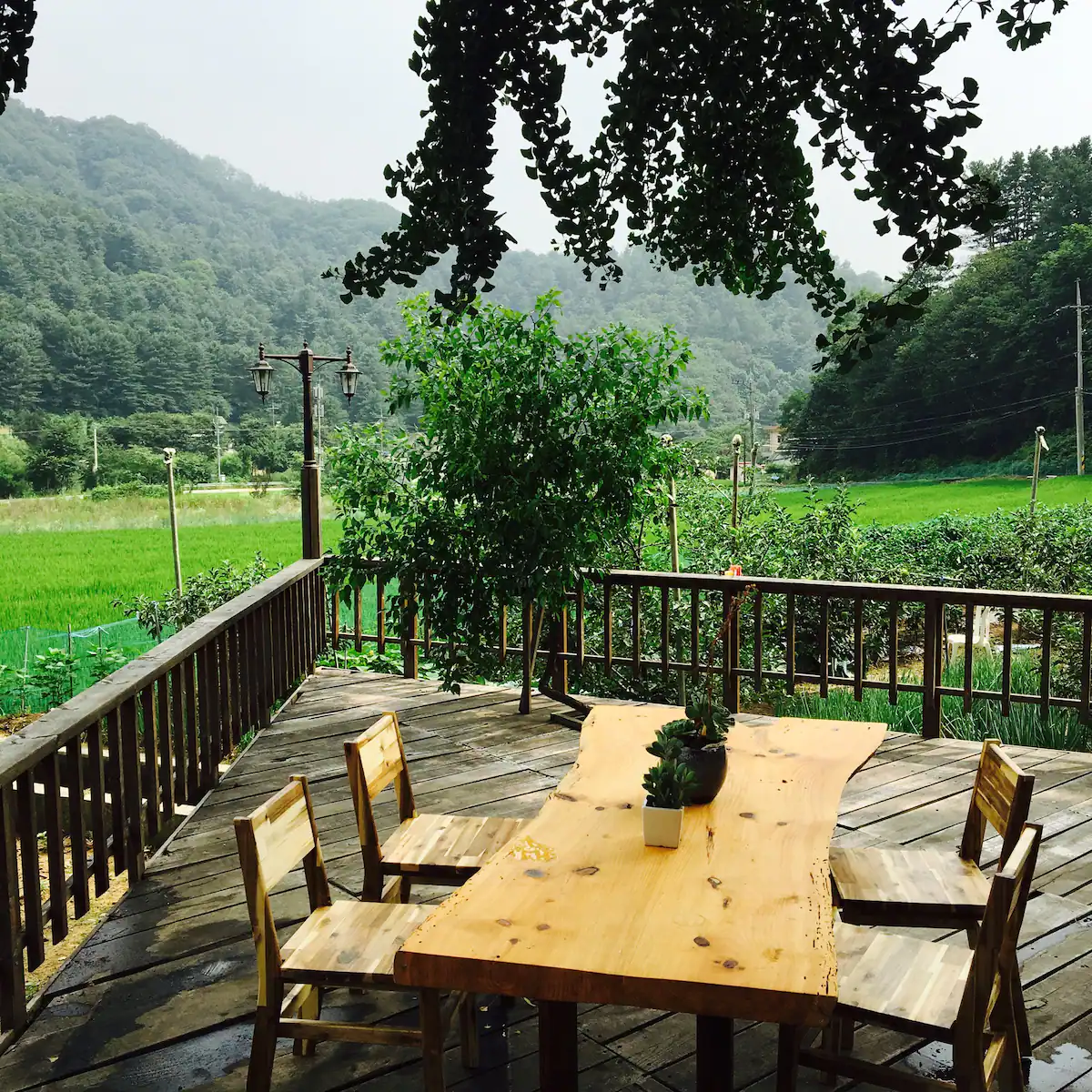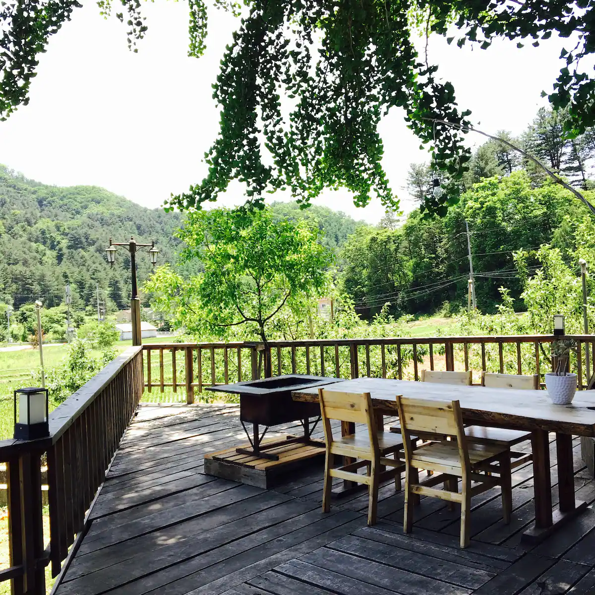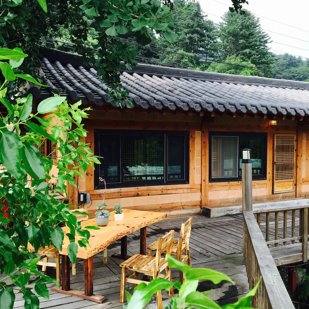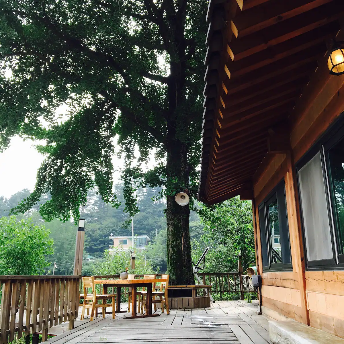 서울에서 차로 한 시간 거리의 경기도 가평에 자리 잡은 모원당은 독채 한옥입니다. 50년이 넘은 은행나무가 한옥 건물과 함께 자리 잡고 있어서 나무 그늘아래 테라스에 앉아서 정겨운 시골마을의 자연경관을 한눈에 바라볼 수 있습니다.