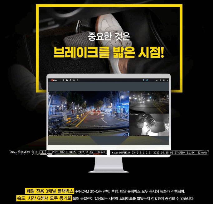 한문철 블랙박스로 더 유명한 지넷시스템 드림아이 한캠 3XQ 3 채널은 전방, 후방, 페달의 세 가지 뷰를 동시에 녹화하여 사각지대를 최소화해 줍니다. Full HD 해상도로 초고화질 영상을 제공하며, 주행 중 발생하는 모든 상황을 명확하게 기록해 줍니다.