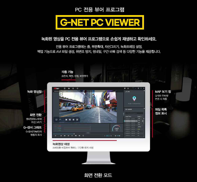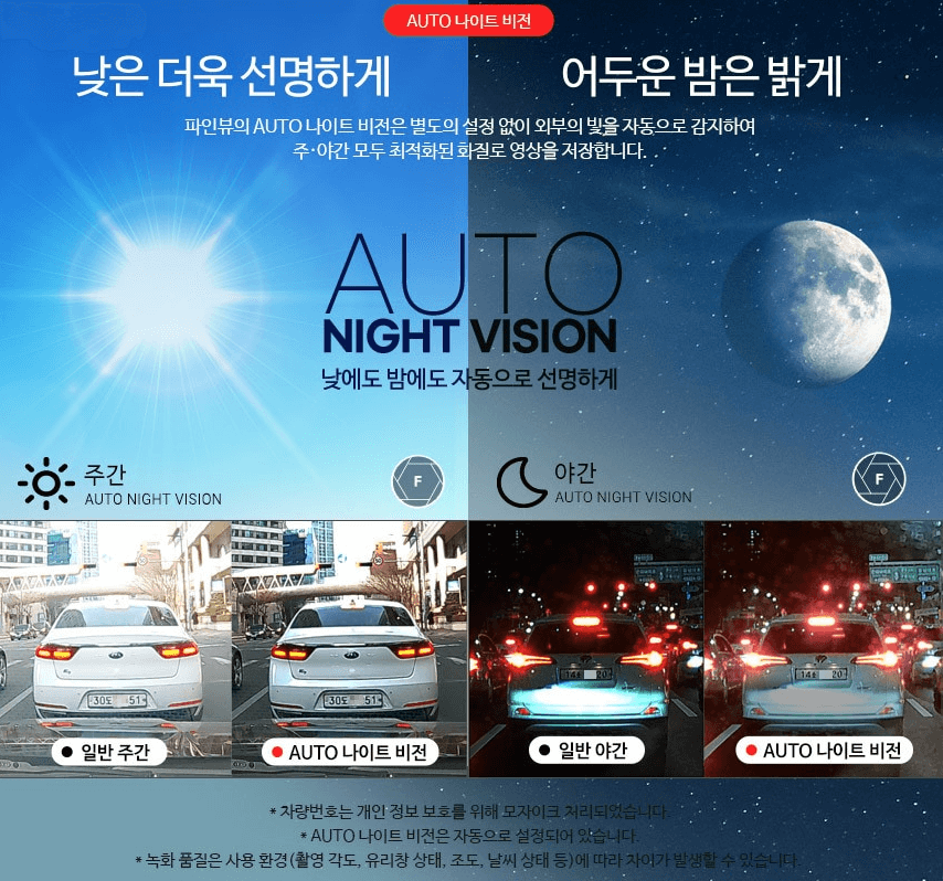 | 녹화 | 페달촬영, 적회선페달카메라, 야간보정, 타임랩스, 고온차단, 자동포맷, 오토나이트비전 등 |