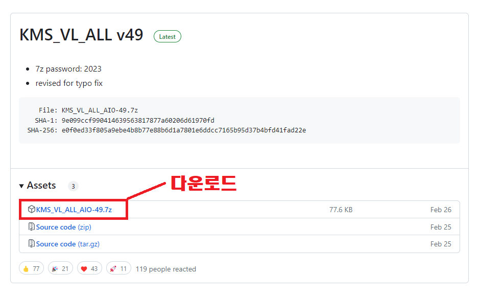 - MS오피스 영구 인증툴 다운로드 (압축해제 비밀번호 : 2023)