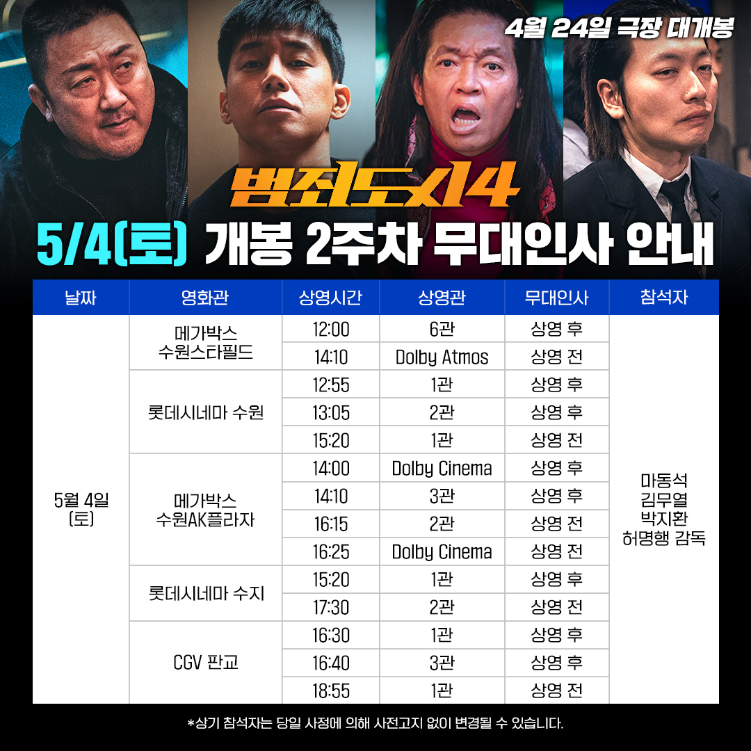 범죄도시 4 무대인사 일정