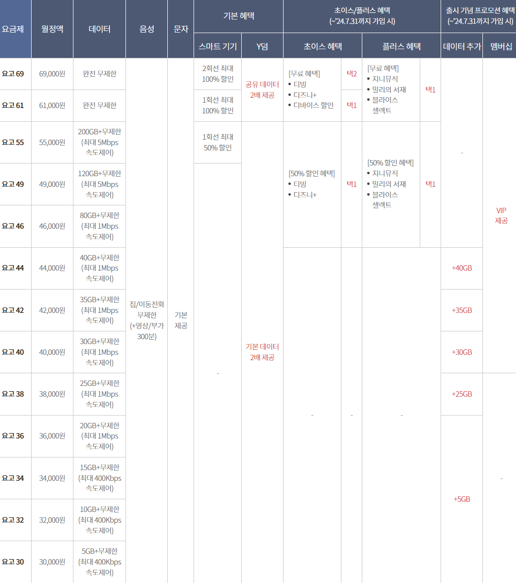 KT 요고 요금제 종류