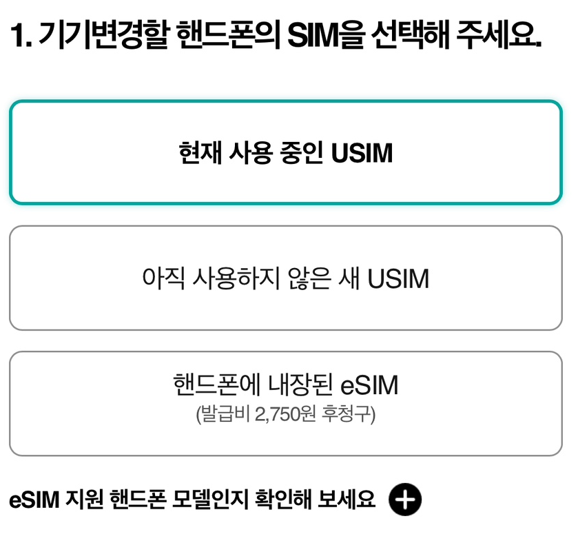 5. 현재 사용 중인 USIM 선택