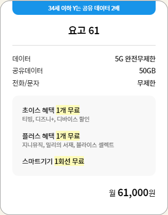 요고 요금제 선택